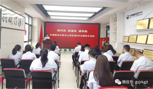 近日,甘肅股權(quán)交易中心黨支部召開“強(qiáng)作風(fēng),抓落實(shí),提效能”主題黨日活動(dòng)。支部書記樊亞娟主持會(huì)議,全體黨員及員工參加。