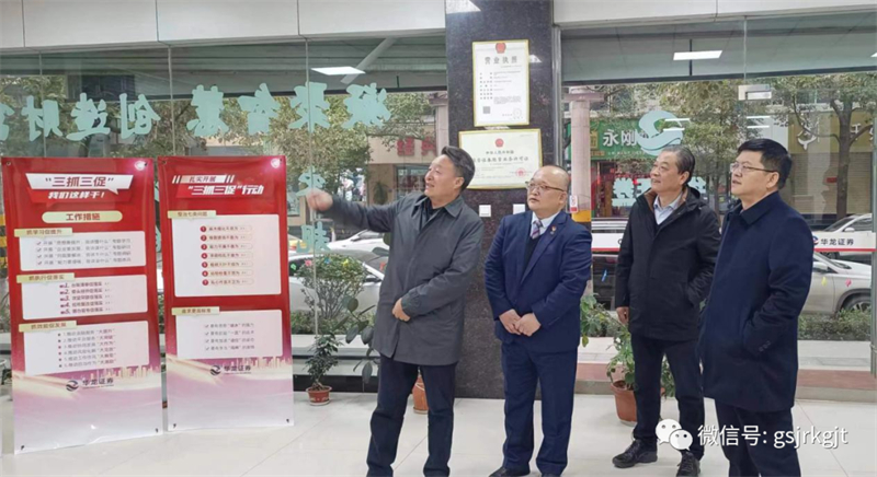 在華龍證券隴南建設路營業部,祁建邦詳細了解業務工作運行情況以及單位員工的工作、生活情況,勉勵大家在工作崗位上再接再厲取得更大成績。