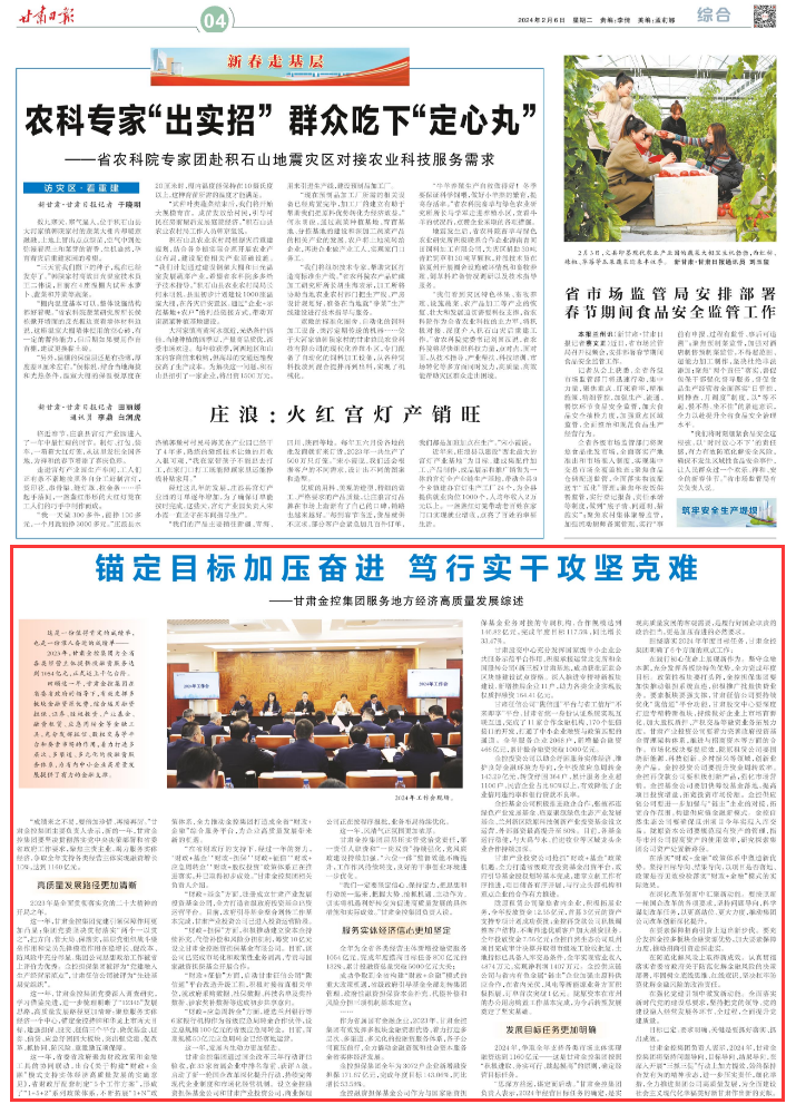 圍繞落實2024年年度目標任務,甘肅金控集團明確了6個方面的重點工作: