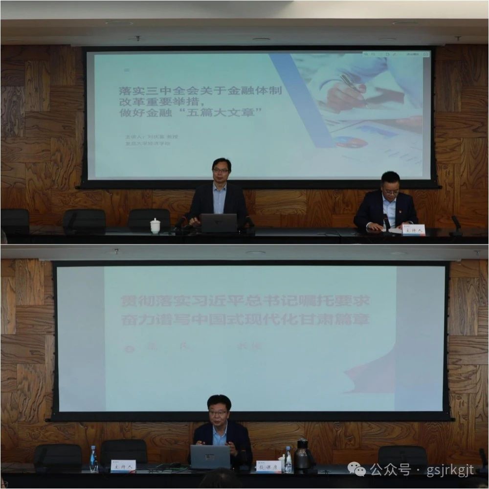 此次培訓通過線上線下相結合的方式進行。培訓期間,全體學員在線學習了黨的二十屆三中全會精神解讀、構建高水平社會主義市場經濟體制、健全推動經濟高質量發(fā)展體制機制、提高黨對進一步全面深化改革、推進中國式現代化的領導水平等內容,邀請復旦大學經濟學院劉慶富教授從“黨的二十屆三中全會關于金融體制改革的重要舉措解讀、做好金融五篇大文章、異常交易的監(jiān)管”三個大方面,對中國金融體制改革的歷程、成效與經驗,進一步深化金融體制改革的方向與重點,“金融五篇大文章”的背景、內涵與產業(yè)與落地,金融大數據風險管理等內容作了全面深入的輔導。邀請甘肅省委黨校康民教授通過“講好黃河‘故事’做足黃河文章,構建現代產業(yè)體系、發(fā)展新質生產力,貫徹三中全會精神、進一步全面深化改革,加強文化遺產保護傳承、推動文化創(chuàng)新發(fā)展,加強社會建設和治理、提升基層治理效能,毫不放松堅持黨的領導、加強黨的建設”六個方面,對學習貫徹習近平總書記視察甘肅重要講話重要指示精神,作了脈絡清晰、深入細致的專題解讀。