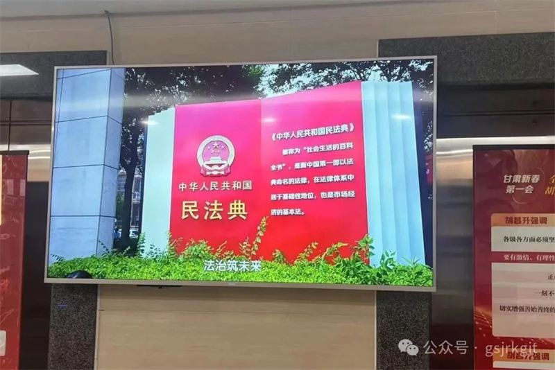利用電子大屏幕循環播放《民法典》普法短視頻、法律條文解讀及案例動畫,以通俗易懂的方式讓民法知識“活”起來。