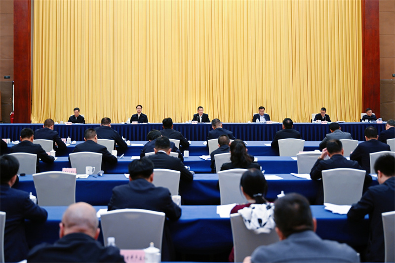 4月8日,省委副書記、省長任振鶴出席全省石油化工產業延鏈補鏈強鏈推進會并講話。(記者盛學卿)