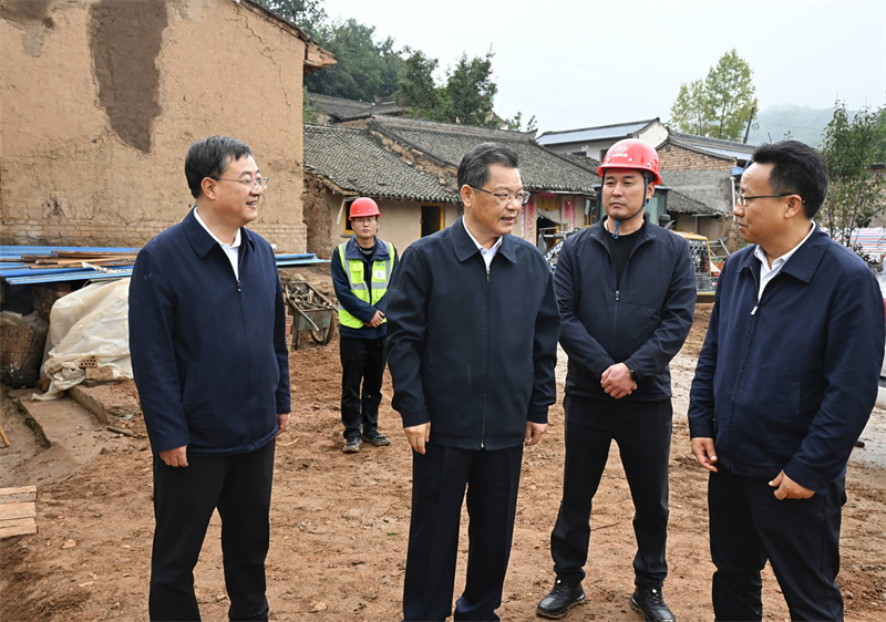 10月4日,省委副書記、省長任振鶴在漳縣調(diào)研地震受災(zāi)和群眾基本生活保障情況,并主持召開隴西5.6級地震災(zāi)后恢復(fù)重建現(xiàn)場辦公會。(記者盛學(xué)卿)