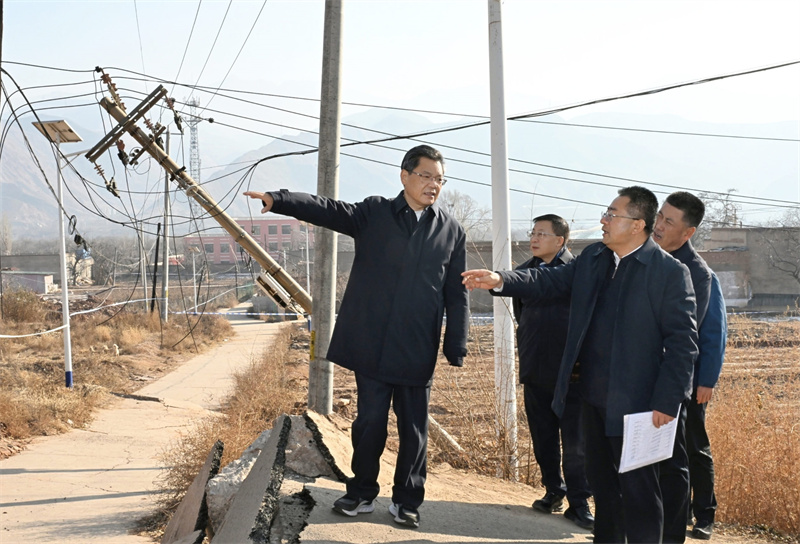 12月17日,省委副書(shū)記、省長(zhǎng)任振鶴在永靖縣調(diào)研滑坡險(xiǎn)情處置工作。(新甘肅·甘肅日?qǐng)?bào)記者盛學(xué)卿)