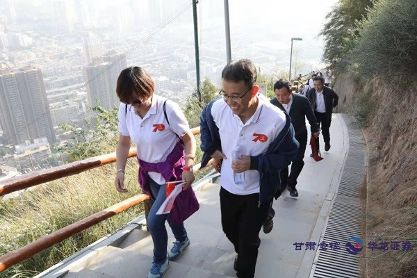 金秋九月,萬物豐稔,登高望遠,天高氣爽。為深入踐行不忘初心、牢記使命主題教育成果,隆重慶祝中華人民共和國成立70周年,甘肅金控、華龍證券800多名職工參加“贊綠水青山、與祖國同行”徒步登高健身活動,抒發對偉大祖國的崇敬和熱愛之情。