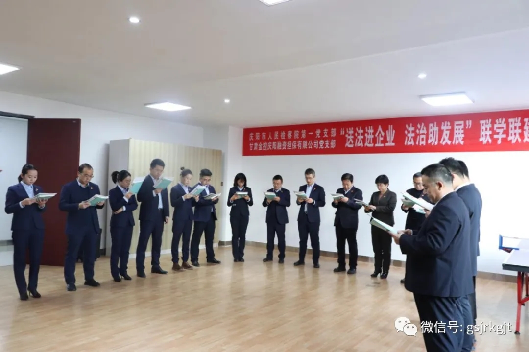 近日,慶陽市人民檢察院聯(lián)合甘肅金控慶陽擔(dān)保公司開展聯(lián)學(xué)聯(lián)建活動,創(chuàng)新黨建引領(lǐng)新形式,豐富黨建工作新內(nèi)容,增強(qiáng)企業(yè)依法經(jīng)營新理念,全面推動法治管理建設(shè)縱深發(fā)展。